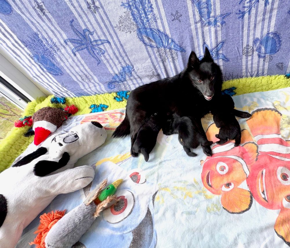 Am Abend des 01.03.2026 hat uns Amira in nur 1 Stunde wieder instinktsicher und problemlos 3 Welpen ins Nestchen gelegt :). 2 Rüden und 1 Hündin mit wunderbaren Gewichten sind es geworden, und wir waren vom ersten Moment an sehr verliebt in unser Kleeblättchen.